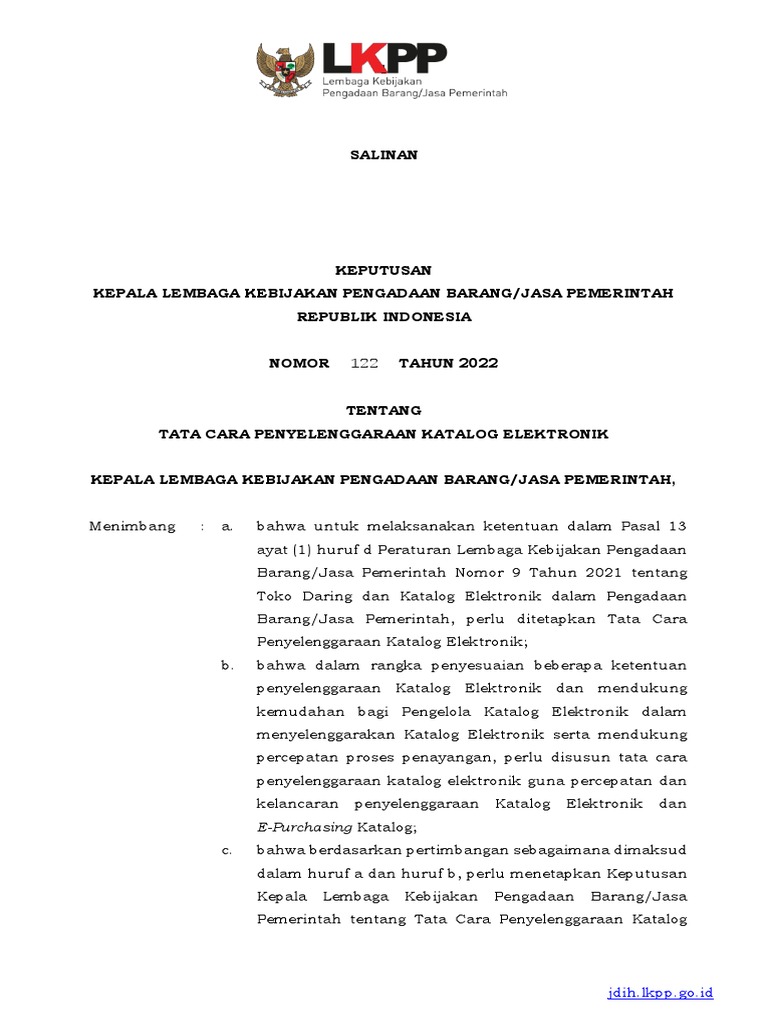 Pada tahun 2022, Kepala Lembaga Kebijakan Pengadaan Barang/Jasa Pemerintah (LKPP) mengeluarkan sebuah keputusan yang menimbulkan kontroversi, yaitu Keputusan Kepala LKPP Nomor 122 Tahun 2022. Keputusan ini menuai kritik dari berbagai kalangan, termasuk dari organisasi masyarakat sipil, Pundi, yang kemudian melayangkan surat resmi kepada LKPP dan Kejaksaan Agung. Artikel ini bertujuan untuk mengurai lebih dalam tentang keputusan tersebut, kritik yang dilontarkan, serta implikasi hukum dan sosial yang mungkin ditimbulkan.